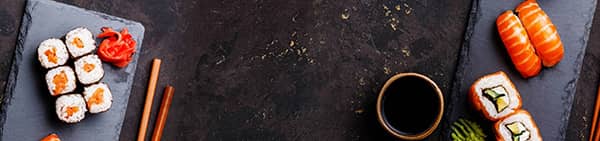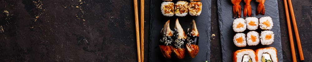z awokado, serkiem Philadelphia, ogórkiem, rzepą marynowaną, mixem ryb i owoców morza, ryżem oraz nori