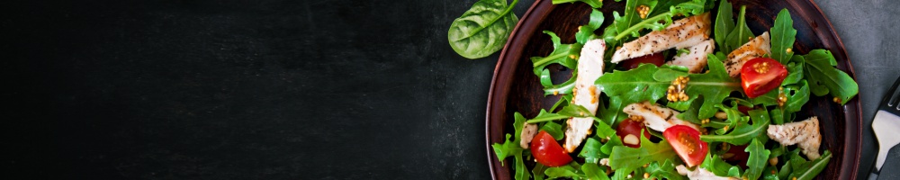 grillowane mięso drobiowe, sałata lodowa, pomidory, oliwki, cebula czerwona, słonecznik