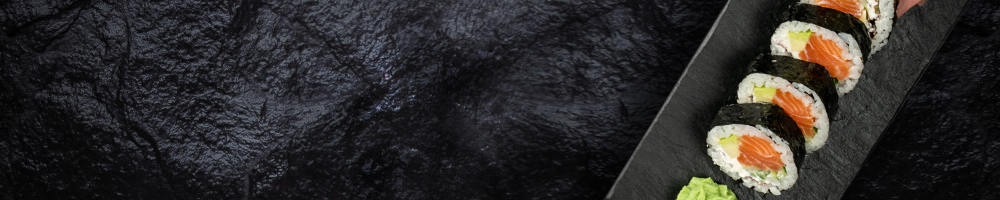 (62szt) California maki z krewetką w tempurze obkładana łososiem California maki z doradą w tempurze Futomaki z z surowym łososiem Futomaki z sałatką z surimi Futomaki z pieczonym łososiem Hosomaki z ogórkiem Hosomaki z surimi Hosomaki z łososiem