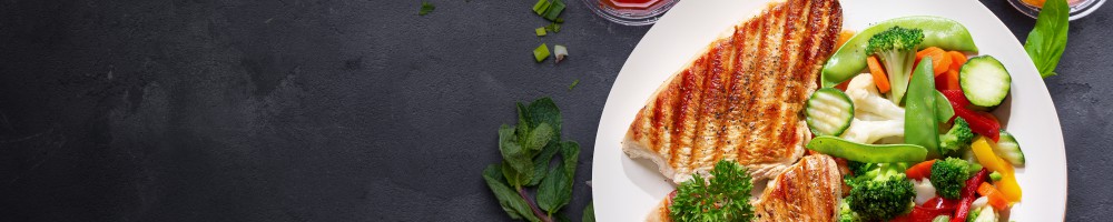 mięso 150g, dodatek 150g, surówka lub sałatka, sos