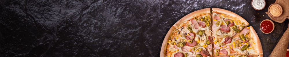 sos, ser, włoska kiełbasa, pieczarki, papryka, kukurydza